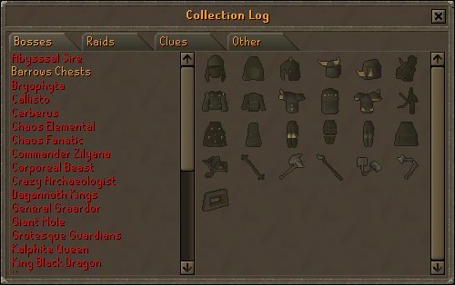 Collection Log in OSRS. You can see the general idea how items will be sorted.